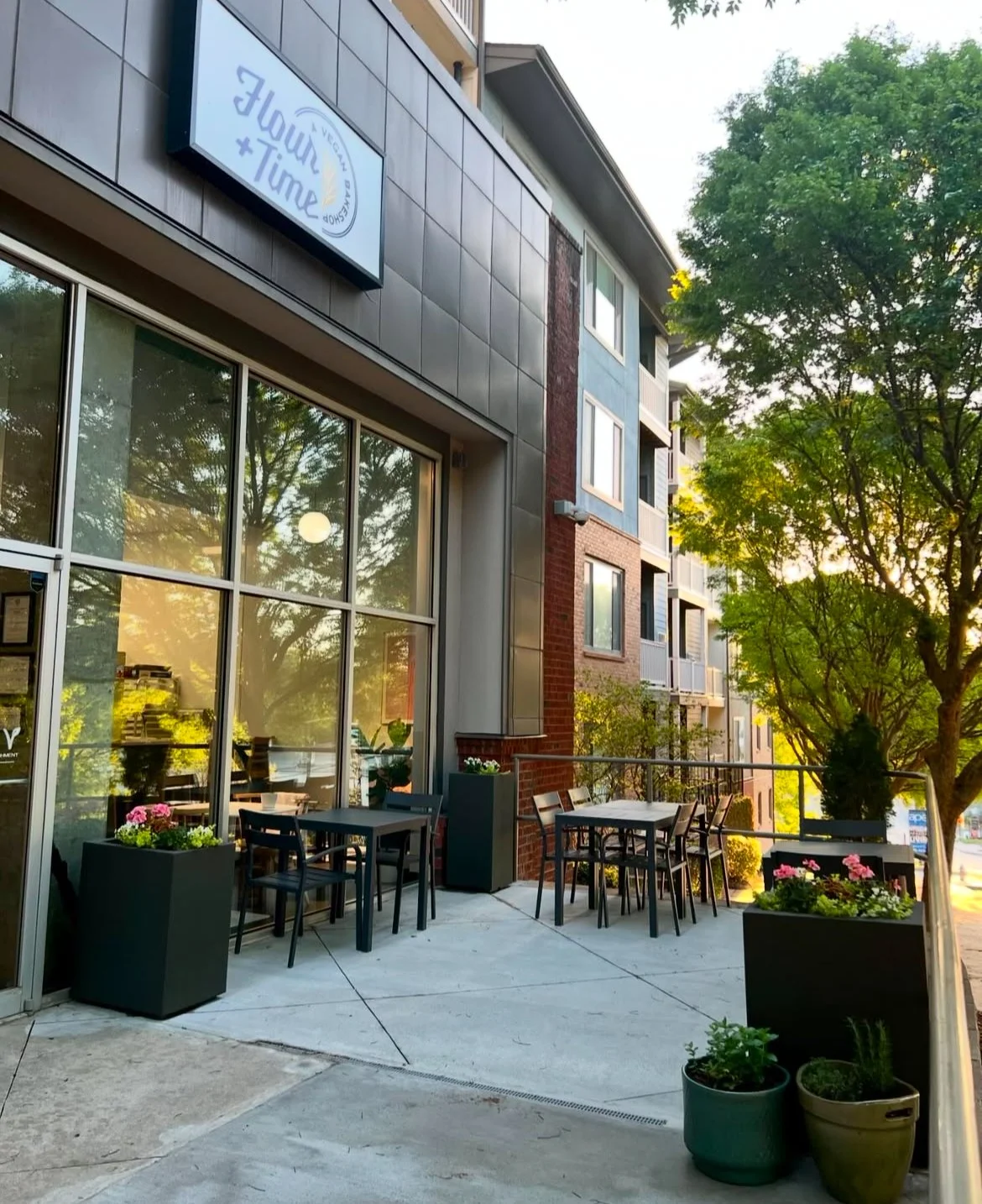 Flour + Time Bakery is an Atlanta Vegan Bakery specializing in handcrafted vegan pastries, breads, and desserts that are as beautiful as they are delicious. Located in West Midtown, we are proud to be a part of the Atlanta Vegan Community, offering allergy-friendly options that everyone can enjoy. We are also one of Atlanta’s only fully vegan coffee shops, serving exceptional coffee in a welcoming, remote-work friendly space with 13 outlets and a dog-friendly patio for your convenience.